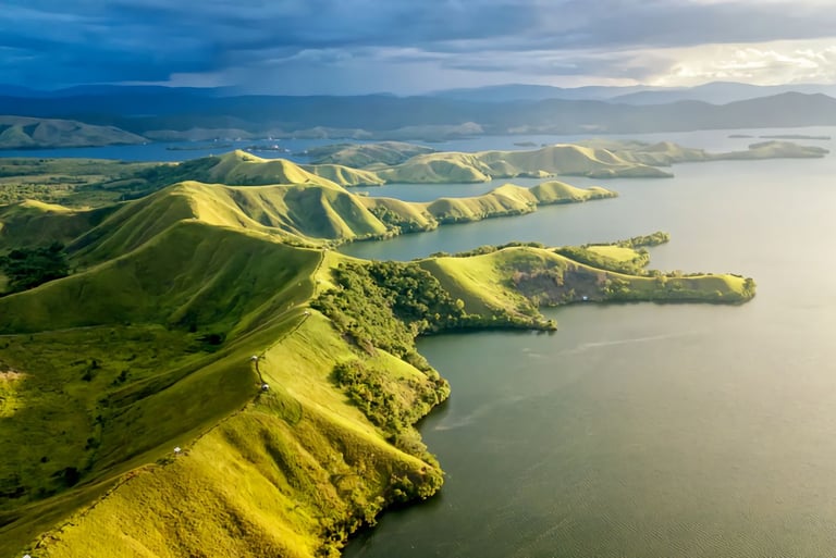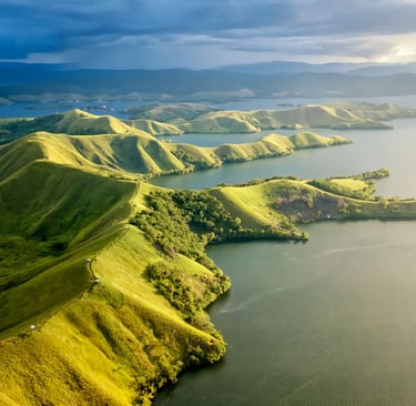 The hilly and indented topography allows city development to follow the natural contours, creating a unique urban landscape. The climate is tropical with high rainfall throughout the year, resulting in lush, green vegetation. Overall, Jayapura's geography reflects a blend of coastal areas, hills, and lakes, creating a unique and strategic natural character.